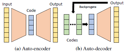 이 아이디어는 적어도 역전파를 통해 각 데이터 포인트와 디코더 가중치에 할당된 잠재 벡터를 동시에 최적화하는 Tan et al. [50의 작업으로 거슬러 올라간다.