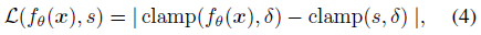 여기서 clamp(x, δ) := min(δ, max(-δ, x))는 메트릭 SDF를 유지할 것으로 예상되는 표면으로부터의 거리를 제어하기 위해 파라미터 δ를 도입합니다.