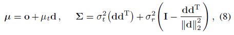 이러한 모멘트를 정의하면 원뿔형 frustum 내의 임의의 점에 대한 평균과 공분산을 구성할 수 있다.