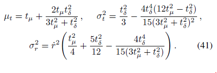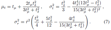 이를 통해 각 평균과 분산을 1차 항으로 다시 작성할 수 있으며, 이 항은 t_δ로 스케일링된 고차 항에 의해 수정됩니다.