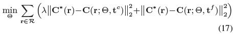 여기서 C*(r)는 입력 이미지에서 가져온 관찰된 픽셀 색이며, R은 모든 이미지에 걸친 모든 pixels/rays 세트입니다.