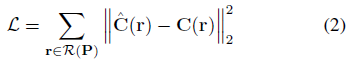 그런 다음 카메라 레이 r에 대해 렌더링된 픽셀 값을 포즈 P를 사용하여 타겟 뷰의 모든 카메라 레이에 대해 해당 ground truth 픽셀 값 C(r)와 비교할 수 있습니다.