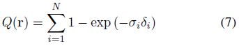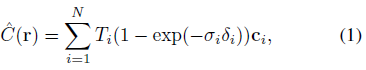 에 의해 주어지며, 여기서 ~r_i는 ray ~r의 관측을 위한 샘플링된 점이다.