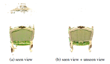 또한 학습된 모델은 특히 학습 이미지의 관점이 서로 유사할 때 보이는 이미지에 심하게 과적합되고 퇴화된 솔루션으로 수렴된다.