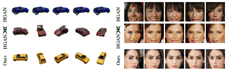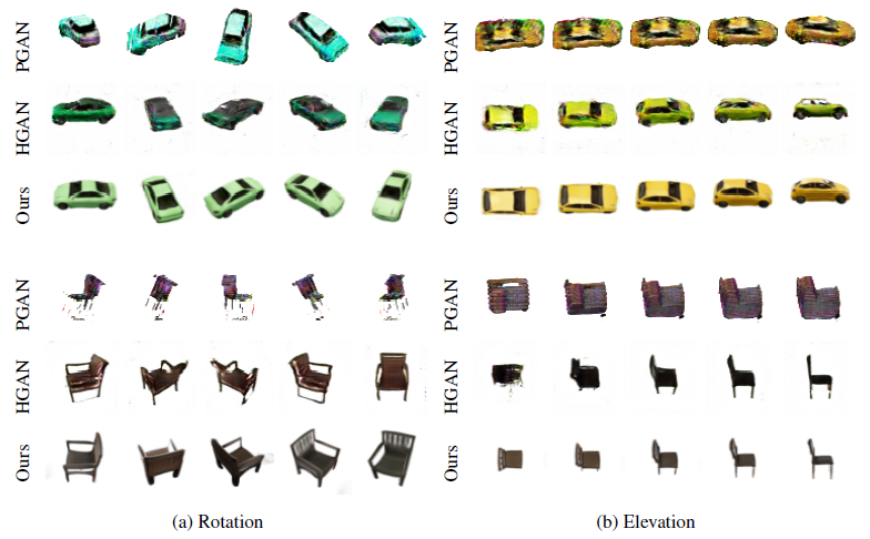따라서, 우리는 이 분석을 위해 실험을 3D Conv를 사용하지 않는 HoloGAN과 HoloGAN으로 제한한다.