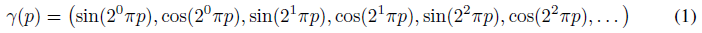 보다 구체적으로, 그들은 먼저 x와 d의 세 가지 구성 요소 모두에 요소별로 적용되는 고정 위치 인코딩을 사용하여 3D 위치 x ∈ R^3과 뷰 방향 d ∈ S^2를 고차원 피쳐 표현에 매핑한다: