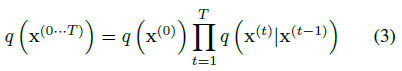 q(x^(1...T)|x^(0) b_(1...T)로부터의 샘플 의존성 (Kingma & Welling, 2013)에서와 같이 '동결 노이즈'를 사용하여 명시한다.