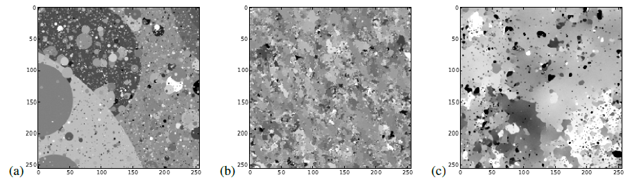 Dead Leaf Images는 스케일에 대한 멱함수 분포에서 그린 겹겹의 폐색 원으로 구성된다.