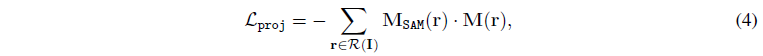 따라서 이 새로운 뷰의 보다 정확한 2D 마스크 M_SAM^(n)이 생성되고 복셀 그리드에도 투영되어 3D 마스크가 완성됩니다.