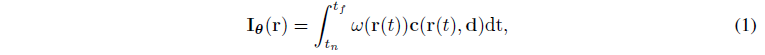 , 여기서 ω(r(t)) = exp(-∫ σ(r(s))ds · σ(r(t))), t_n 및 t_f는 각각 ray의 근거리 및 원거리를 나타냅니다.