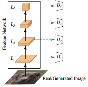 저희는 별도의 판별기 D_l을 레이어 L_l의 피쳐와 각각 연관시킵니다.