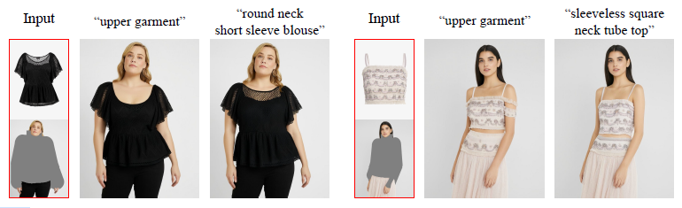또한 한 쌍의 garment-person 이미지를 사용하여 사용자 지정한 결과를 보여줍니다.