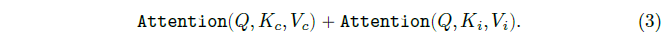 크로스 어텐션 레이어의 출력은 Attention(Q, K_c, V_c) = softmax(QK_c^T/√d) · V_c에 의해 제공됩니다.