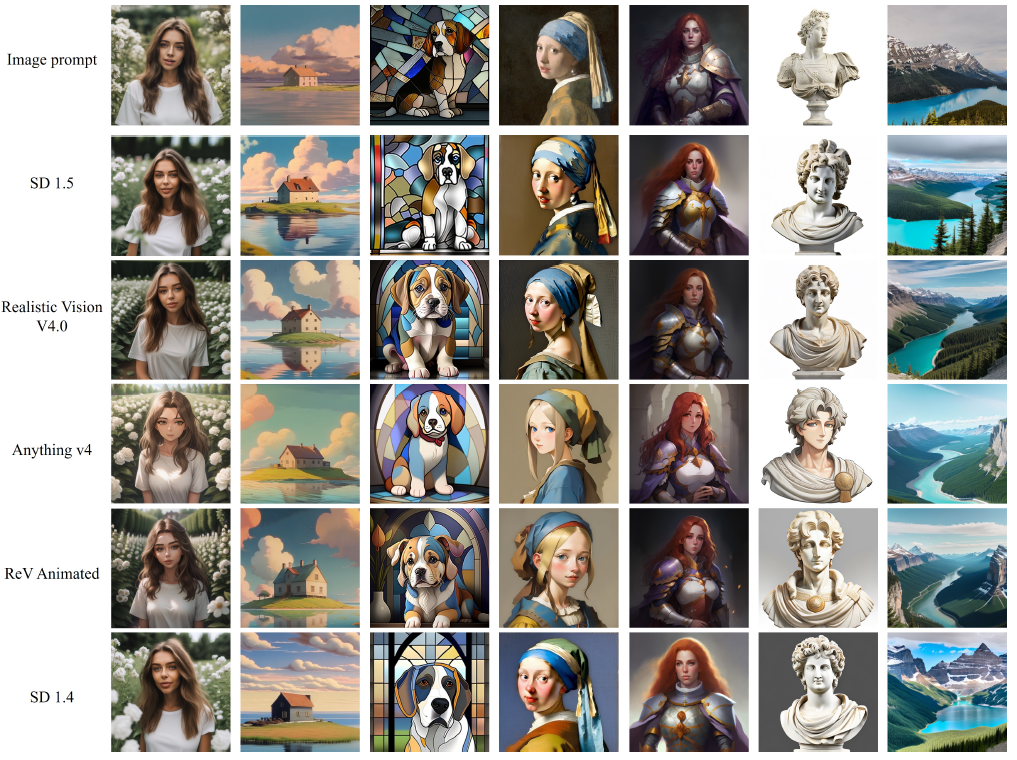 그림 4에서 볼 수 있듯이 IP-Adapter는 이러한 커뮤니티 모델에서 잘 작동합니다.