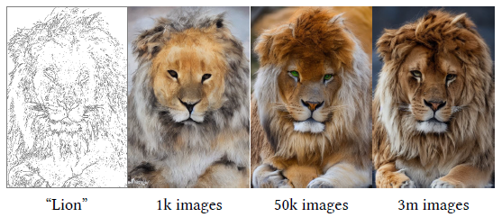 학습은 제한된 1k 개의 이미지로 붕괴되지 않으며 모델이 인식 가능한 lion을 생성할 수 있습니다.