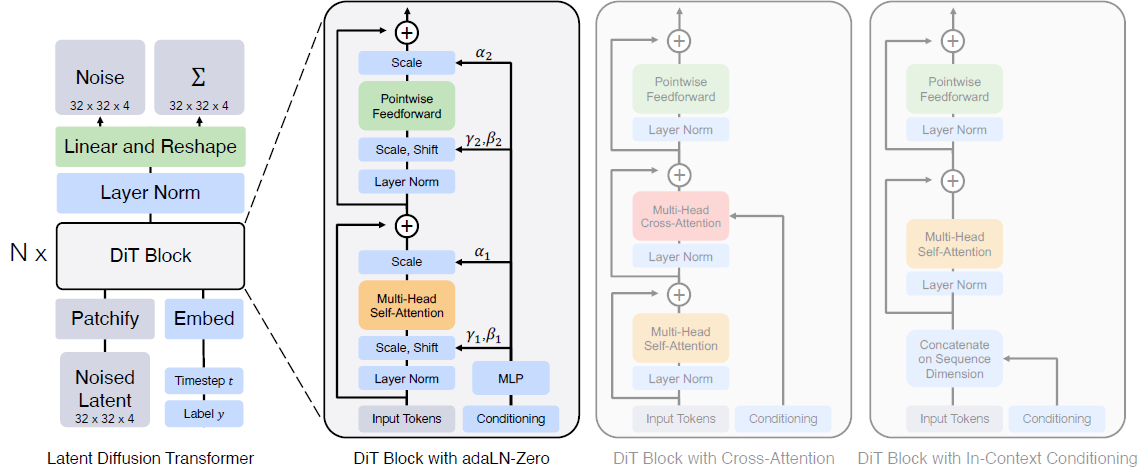 나머지 논문에서는 모든 모델이 adaLN-Zero DiT 블록을 사용할 것입니다.