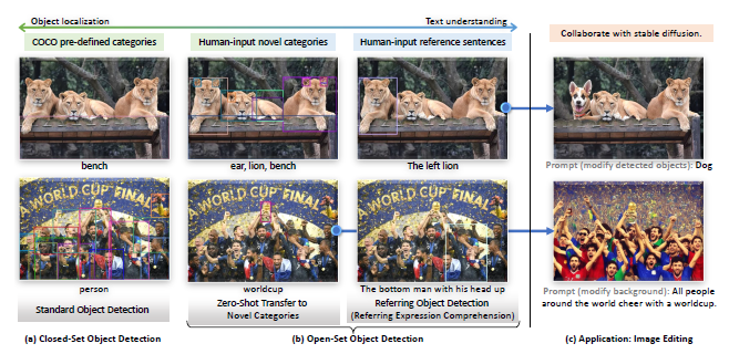 Grounding DINO는 입력 텍스트로 지정된 이미지에서 객체를 감지하는 것을 목표로 합니다.