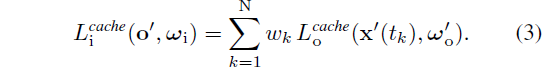 캐시는 센서에서 시간 분해된 입사 래디언스를 렌더링하는 데에도 사용할 수 있으므로, 위에서 언급한 L_i를 L_i^cache로 대체하는 L_cache를 최소화하여 동일한 방식으로 이를 supervise합니다.