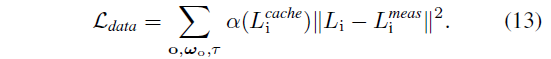 여기서 L_o^cache는 NeRF에 의해 예측된 2차 ray를 따라 각 지점에서 방출되는 래디언스입니다.