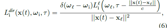 으로 주어지며, 여기서 x_ℓ은 광원의 위치, ω_ℓ은 광원의 방향, L_i^ℓ는 광원의 강도, δ(ω_ℓ - ω_i)는 디랙 델타 함수입니다.