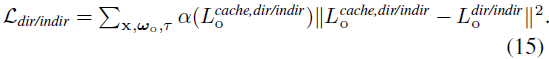 로 렌더링합니다, 여기서 L_o^cache는 신경 표현에 의해 예측되는 나가는 레디언스입니다.