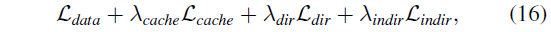 이며, 여기서 λ_cache, λ_dir, λ_indir는 각 loss 성분을 측정하는 하이퍼파라미터입니다.
