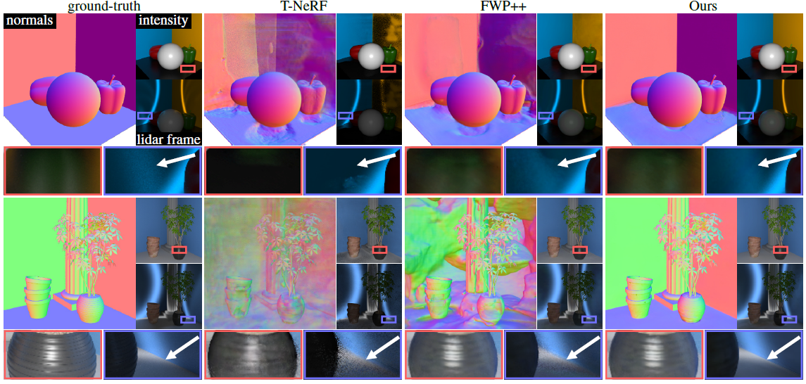 반면, FWP++ [48]은 직접 및 간접 래디언스를 모델링하고 정확한 통합 새로운 뷰와 라이다 프레임을 복원합니다.