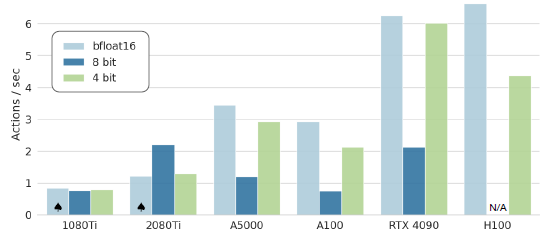 4비트 양자화 모델은 A5000에서 3Hz로 실행될 수 있으므로 데이터 수집 중 시스템 동역학과 더 밀접하게 일치합니다.