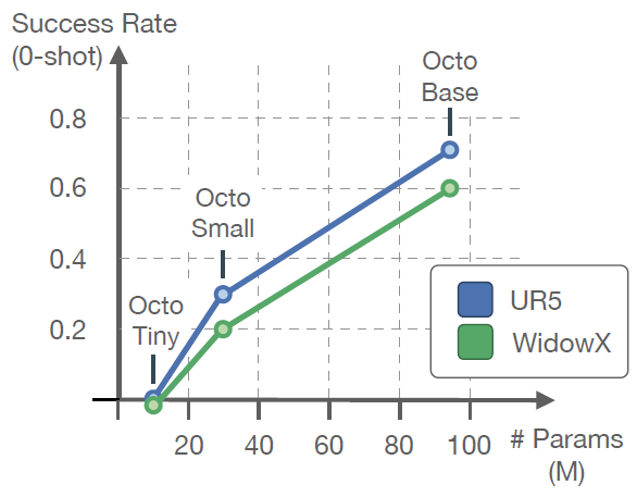 그림 6에서 우리는 policy의 제로샷 성능이 모델 크기가 증가함에 따라 확장된다는 것을 보여줍니다.