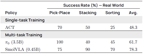 SmolVLA는 단일 GPU에서 학습하고 소비자용 GPU 또는 CPU에 배포하도록 설계되었습니다.