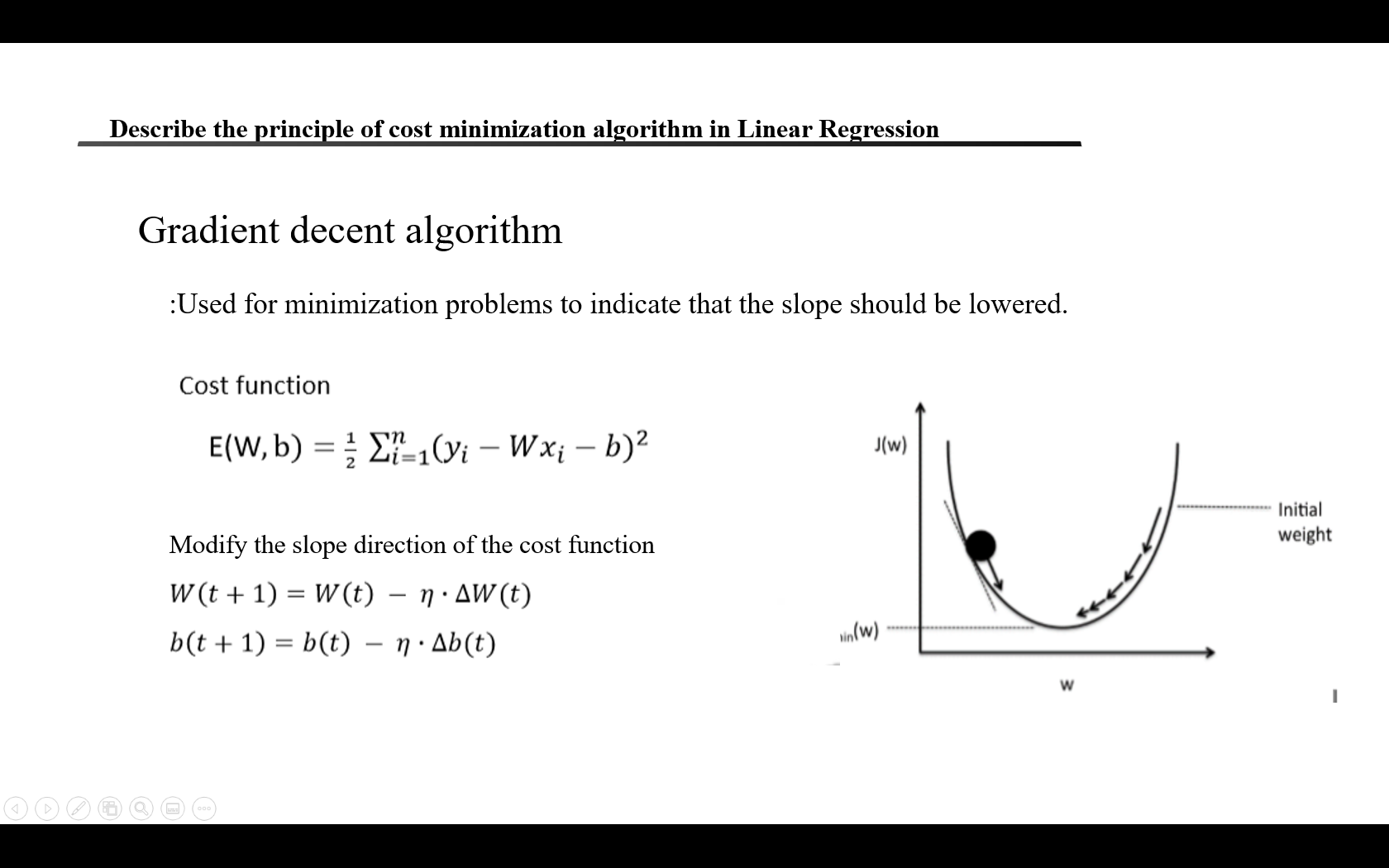 [딥러닝] Describe the principle of cost minimization algorithm in Linear Regression