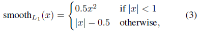 우리는 [9]에 주어진 t^k에 대한 매개 변수화를 사용하는데, 여기서 t^k는 객체 제안에 상대적인 스케일 불변 변환 및 로그 공간 높이/폭 이동을 지정합니다.