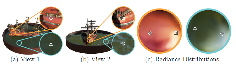 우리의 방법이 람 베르트가 아닌 효과를 표현하기 위해 입력 보기 방향을 사용하는 방법의 예는 그림 3을 참조하십시오.