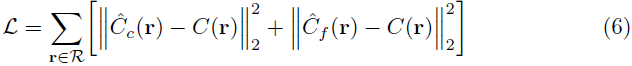 여기서 R은 각 배치의 광선 세트이고 C(r), ^Cc(r) 및 ^Cf(r)는 각각 광선 r에 대한 Ground Truth, Coarse Volume 예측 및 Fine Volume 예측 RGB 색상입니다.