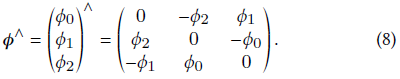 여기서 스큐 연산자(·)∧는 벡터 을 스큐 행렬인