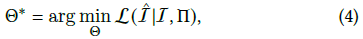 에서 ^I는 합성 이미지 세트 {^𝐼_1, ..., ^𝐼_𝑁}를 나타냄)에서 관찰된 뷰와 합성된 뷰 사이의 측도 오류를 최소화하여 훈련할 수 있습니다.