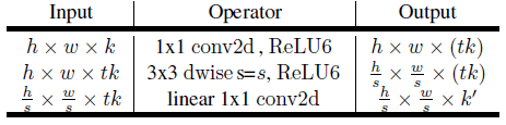 d' 입력 채널 및 d'' 출력 채널이 있는 크기 h x w, 확장 인자 t 및 커널 크기 k의 블록에 대해 필요한 곱셈의 총 수는 h x w x d' x t(d' + k2 + d'')입니다.